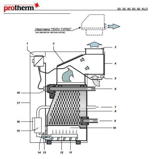 - Tirage de cheminée contrôlé. Si vous décidez d'installer une chaudière plus puissante, cette fonctionnalité sera extrêmement utile pour que la flamme ne s'éteigne pas par mauvais temps. Et tous les produits de combustion viennent de s'évaporer dans le système de ventilation.