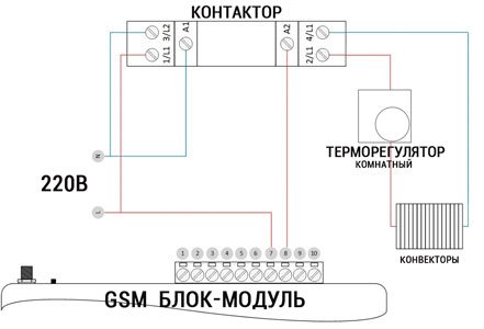Schéma de contrôle à distance des convecteurs à l'aide d'un contacteur au module-bloc GSM