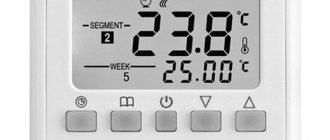 (alimenté par deux piles "doigts") vous pouvez régler les modes, par exemple, de 21h00 le dimanche à 15h00 le vendredi, régler la température en mode économie + 5°С, et de 15h00 le vendredi à 21h00 Dimanche, vous précisez +25°C. Et même si vous ne parvenez pas à venir dans une maison de campagne le week-end, vos convecteurs fonctionneront pendant 2 jours à + 25°C et reviendront en mode économie.