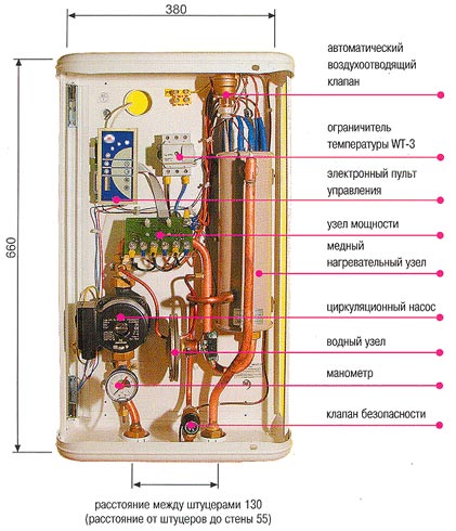 Toutes les chaudières électriques sont équipées d'un système de régulation pour le contrôle de la température et d'un stabilisateur qui protège contre les surtensions - les appareils y sont presque toujours sensibles. À propos, le principal problème du calcul d'une chaudière électrique est le plus souvent la charge sur le réseau, qui, en règle générale, est plus que la norme.