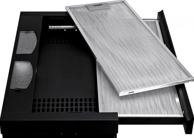 Important! L'objectif principal des filtres anti-graisse est de protéger les ventilateurs situés à l'intérieur de la hotte, et le résultat de l'utilisation de cartouches de carbone est une purification complète de l'air.