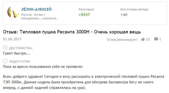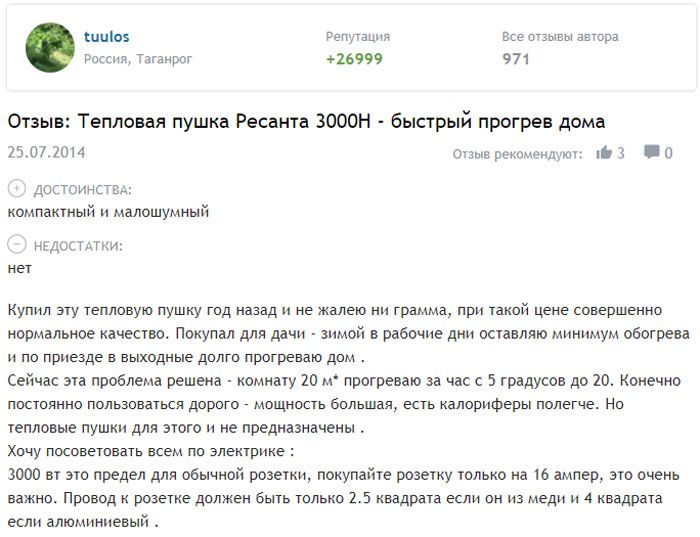 Un autre avis sur le modèle RESANTA TEP-3000N: