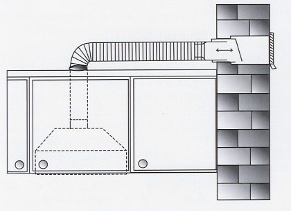 Si les possibilités financières ne sont pas si bonnes, vous pouvez monter un bon ventilateur de type radial et placer en plus une hotte puissante au-dessus du poêle. Le cadre de la hotte est simplement fixé au mur ou au meuble, et un manchon en part vers la grille de ventilation.