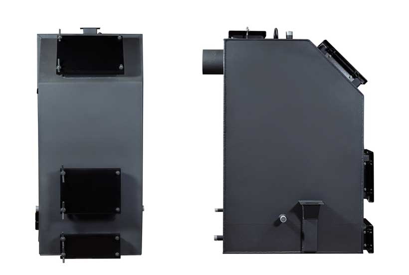 Les chaudières sont de forme rectangulaire, ont un design attrayant et des dimensions compactes. Pour une évacuation plus complète de la chaleur, des canaux sont prévus à travers lesquels passent les gaz de combustion chauffés. Chaudières russes à chauffage par le haut capables de fonctionner avec une charge de charbon jusqu'à 7 jours.