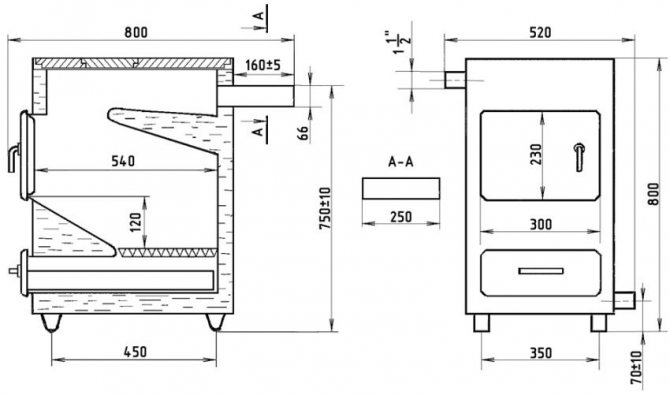 - Facilité d'utilisation. La conception est équipée de trappes pratiques à travers lesquelles vous pouvez facilement charger du carburant ou nettoyer les chambres. Le bac à cendres peut être facilement retiré pour éliminer les produits de combustion.