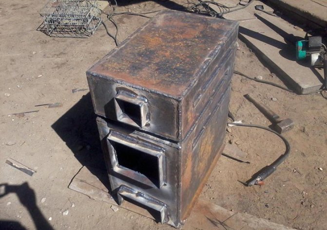- Conformément au schéma en main, une coque rectangulaire ou carrée est soudée. Sa largeur et sa profondeur doivent être inférieures d'environ 6 centimètres aux dimensions de la chambre d'échange thermique.
