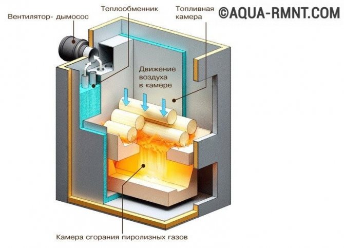 Pour optimiser la consommation de carburant et augmenter l'efficacité, des chaudières de chauffage domestique à pyrolyse pour combustibles solides ont été développées. Malgré la similitude des processus se déroulant à l'intérieur de la structure, leur principe de fonctionnement diffère des modèles décrits de combustion directe.