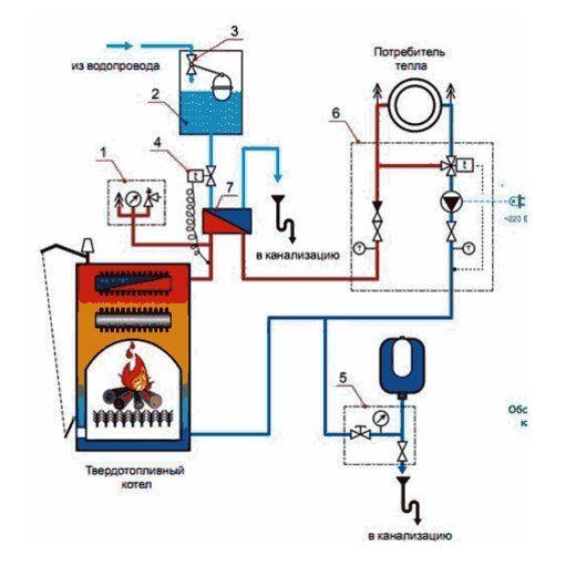 Dans tout système de chauffage, quel que soit le schéma choisi, des éléments de sécurité doivent être présents. Pour les chaudières à combustible solide pour le chauffage de l'eau chaude, ce sont des bouches d'aération, des purgeurs et des clapets anti-retour.