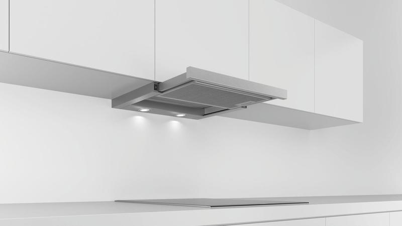 Conseils: si vous n'avez pas la possibilité d'installer une grande hotte de ce type, faites attention aux hottes télescopiques avec un panneau coulissant. En règle générale, ces modèles ont des performances supérieures à celles des autres hottes fonctionnant en mode recirculation.