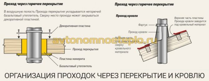 Les règles de sécurité incendie indiquent la nécessité d'installer un panneau d'isolation thermique, sur le mur, sous la chaudière à gaz. Lors du raccordement de la cheminée et du passage du tuyau à travers le toit et les dalles de plancher inter-plancher, des coupe-feu sont fournis.