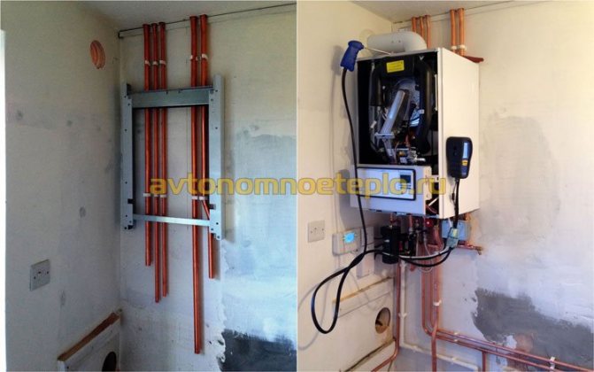 Le travail est effectué à l'aide d'ancrages métalliques, au moyen desquels, strictement selon le niveau, la plaque de montage est fixée. La chaudière est accrochée sur un site préparé. Le mur en béton armé convient à l'installation de tout type de chauffage: haute puissance, avec réservoir de stockage intégré, etc.
