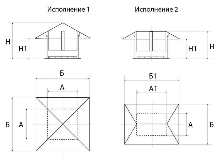 Les deux variétés protègent également bien les conduits de ventilation des précipitations, des débris et remplissent des fonctions décoratives. La seule différence est que les parapluies sont montés sur des canaux de section transversale carrée ou circulaire, et les cheminées sont montées sur des canalisations de section transversale rectangulaire.