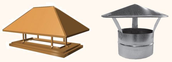 Les mêmes fonctions de protection que les parapluies se retrouvent dans les cheminées, les têtes, les girouettes et les déflecteurs. Il n'y a pas de différences structurelles entre les cheminées et les parapluies.