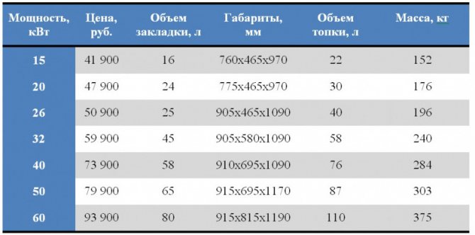 Les chaudières sont extrêmement simples en termes de qualité et de taille du combustible. Cependant, la capacité de chauffage de l'appareil peut être considérablement réduite lors de l'utilisation d'un carburant de mauvaise qualité. Par exemple, lors de l'utilisation de bois de chauffage brut (à 80% d'humidité), la capacité de chauffage diminuera de 70%!