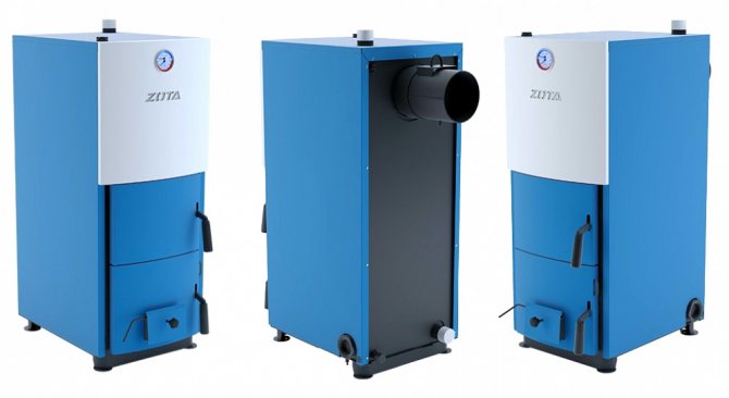 Le combustible est le bois ou le charbon. La chemise d'eau de l'unité est cachée sous le revêtement décoratif et est recouverte sous forme de carton de basalte. Cela réduit les pertes de chaleur. Le corps de la chaudière Zota possède une isolation thermique efficace. Pour faciliter l'utilisation, trois portes sont équipées de poignées ergonomiques.