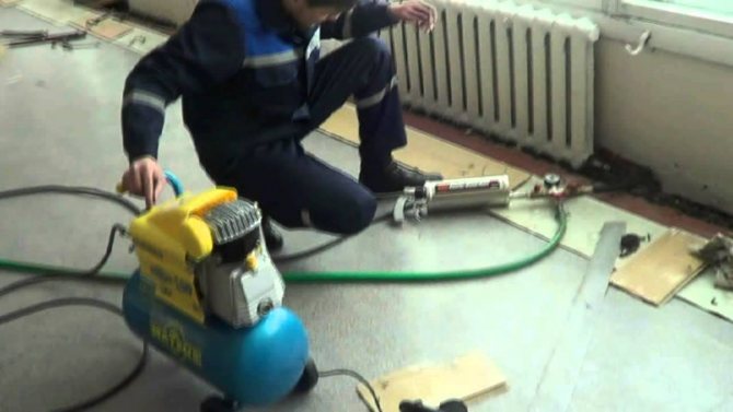 Méthode pneumatique: diagnostic en gonflant le système avec de l'air à haute pression. La méthode est souvent utilisée pour les systèmes extérieurs si la température sur le thermomètre est inférieure à +5 Celsius.