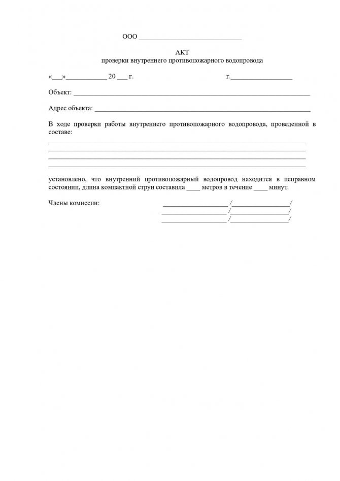 Le contrôle des performances des bouches d'incendie pour la perte d'eau est effectué deux fois par an et, souvent, est combiné avec le contrôle du système d'alimentation en eau d'extinction d'incendie. Sur la base des résultats de l'inspection, un acte est rédigé, qui est signé par la commission. Membres obligatoires: un représentant de l'inspection incendie et un représentant de l'organisation dans laquelle l'inspection a lieu. En outre, la commission peut être entièrement composée d'employés de l'entreprise.