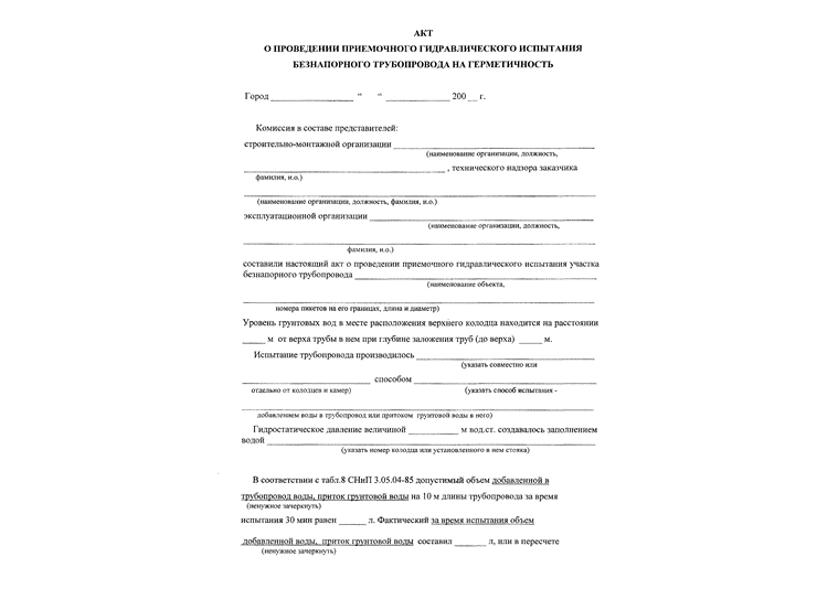 La procédure de sertissage des tuyaux par essai pneumatique est donnée dans le même SanPin, le rapport d'essai est rédigé sous une forme obligatoire, qui est donnée dans l'annexe n ° 3.