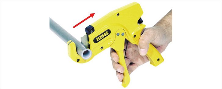 Lors de l'utilisation de ciseaux pour la coupe de tuyaux métal-plastique, la pièce à couper est placée entre les pièces de travail de l'outil, fixes. Après cela, le tube est coupé.