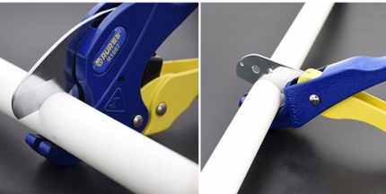 Important! Dans ce cas, vous n'aurez pas à faire d'efforts particuliers, car l'outil est spécialement conçu pour ce travail et possède des lames spéciales. Ces lames peuvent facilement couper des tuyaux en plastique n'importe où.