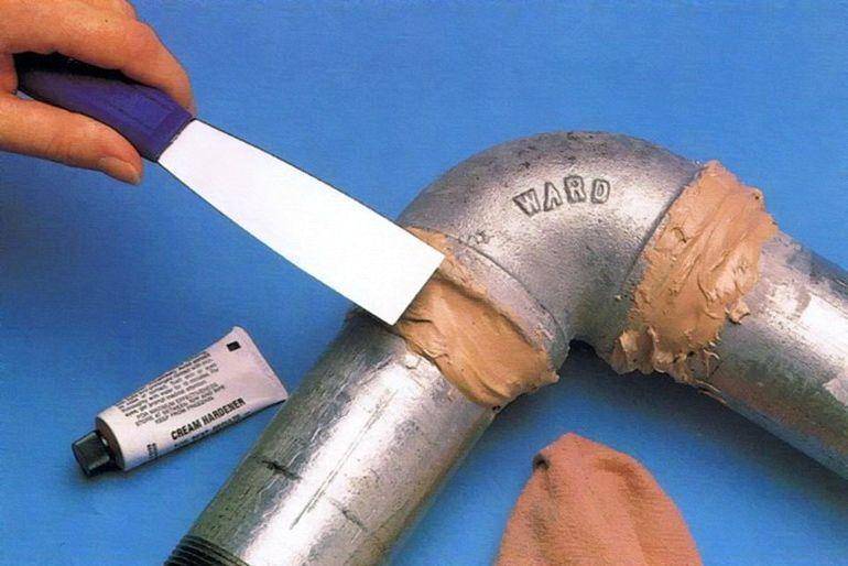Dans de tels cas, le soudage à froid peut être utilisé. Elle est réalisée à l'aide d'un mastic qui, après pétrissage, est appliqué sur la zone endommagée, pressé fermement et lissé. Le durcissement se produit dans les 3 heures.