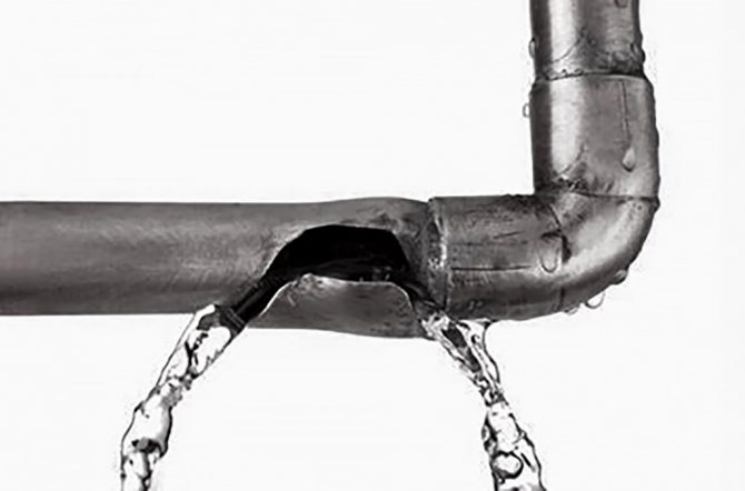 N'oubliez pas que l'apparition de fissures peut provoquer un oubli ordinaire d'une personne. Par exemple, dans le chalet d'été, l'eau n'était pas évacuée du système avant l'hiver. L'eau dans les tuyaux gèlera, ce qui les fera éclater à certains endroits.