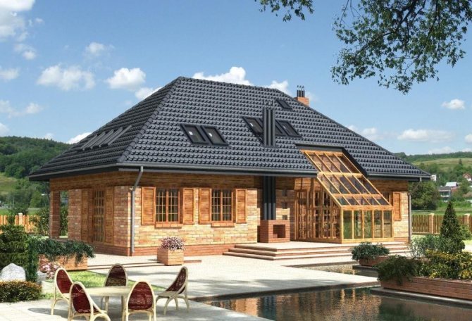 Par exemple, si de l'onduline ou de l'ardoise, des tuiles métalliques sont utilisées, une crête est alors aménagée, ce qui est une option classique. Avec un toit souple ou en céramique, une vanne spéciale est utilisée.