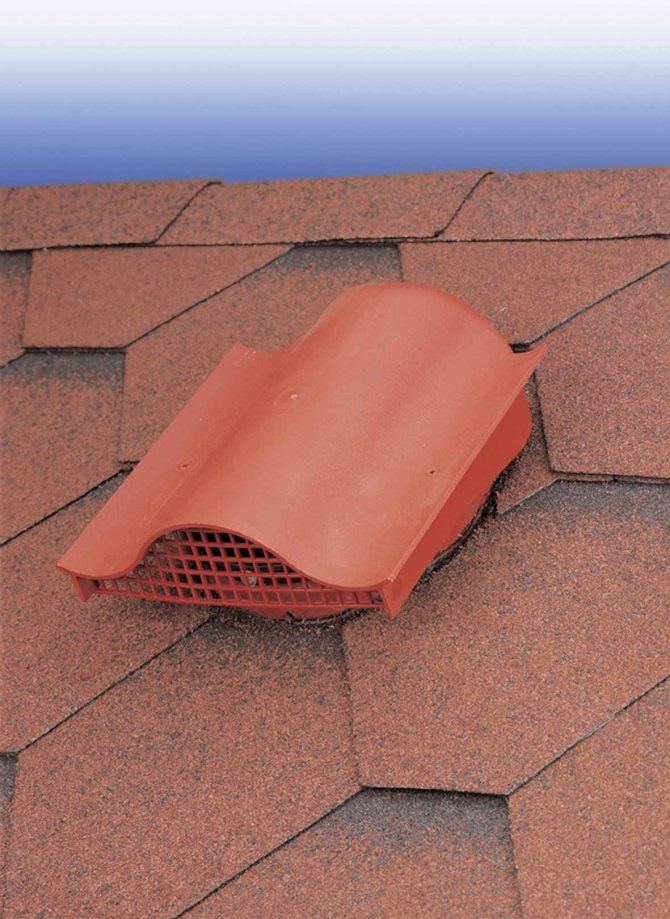 - évents de faîte - utilisés sur les toits en bardeaux. Leur largeur ne doit pas dépasser 5 cm.Ils sont installés en reculant d'une rangée du faîte de la maison.