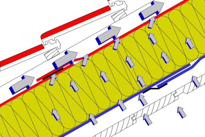 Et aussi le besoin d'agencement de la ventilation dépendra de la couverture extérieure du toit. Si de l'ardoise ou de l'onduline sont utilisées et qu'un film est installé pour fournir des fonctions de pare-vapeur ou de coupe-vent, la conception de la ventilation n'est pas requise.