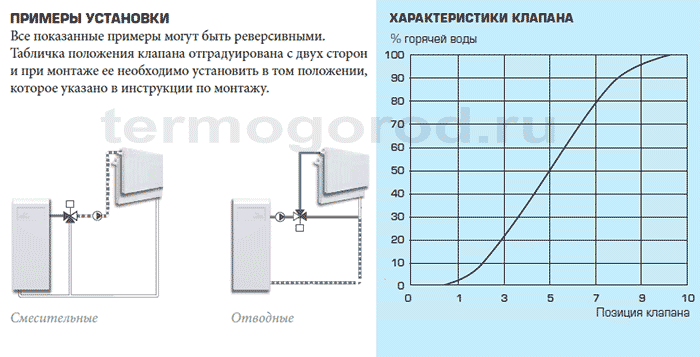 - Maintien de la température... Pour le fonctionnement normal de presque tous les équipements de chauffage, il est nécessaire que le flux de retour ne soit pas plus froid que l'alimentation de 60 degrés. Sinon, la chaudière ne durera pas longtemps. Par conséquent, la vanne prend l'eau de l'alimentation et l'envoie à la conduite de retour.