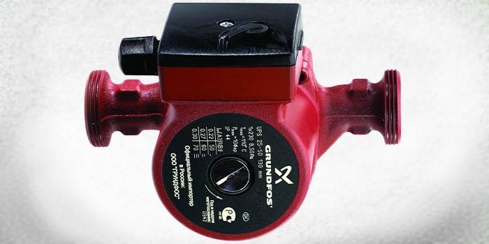 Désignation de la pompe Grundfos UPS 25-40 ou Compass 25-40 signifie que le diamètre nominal de ses tuyaux de dérivation est de 25 mm, ce qui signifie que le filetage de raccordement est de 1 pouce, cette pompe est capable de développer une hauteur manométrique allant jusqu'à 4 mètres (40 décimètres).