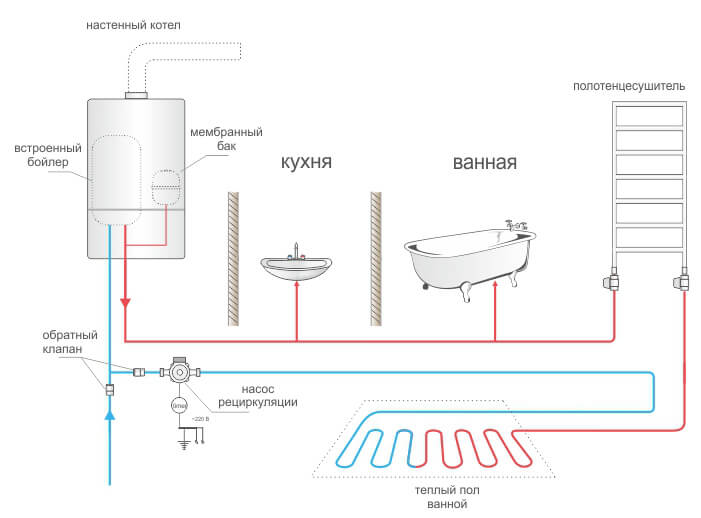 Immédiatement après l'ouverture du robinet, l'eau chaude démarre dans une maison privée: le circuit fonctionne sur la base de l'un des composants suivants: