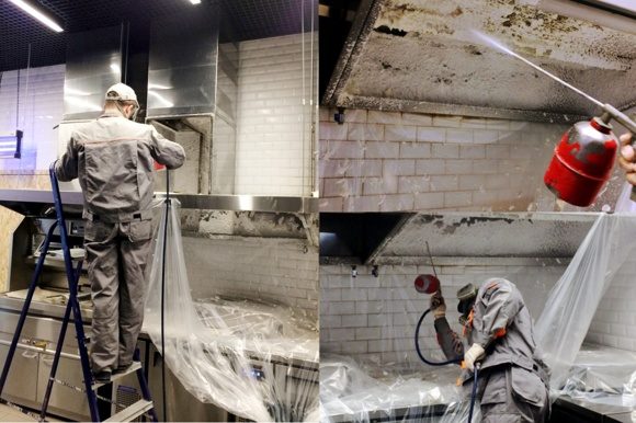 Nos équipes sont composées de spécialistes qui sont des citoyens de la Fédération de Russie, qui ont suivi une formation spéciale et sont autorisés à travailler sur la sécurité électrique et en hauteur. Les hottes d'extraction, les pièges à graisse, les conduits d'air et les ventilateurs d'extraction sont nettoyés. Avant le travail, les locaux sont préparés, le matériel de cuisine est recouvert d'une pellicule plastique. Des mesures sont prises pour protéger les équipements électriques de la cuisine. Un raccordement des trappes d'inspection, des vannes de vidange dans les conduits de ventilation est réalisé.