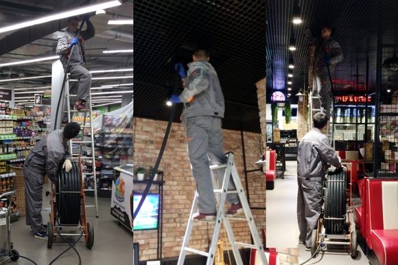 Hypermarché et restaurant de restauration rapide à Podolsk - nettoyage de la ventilation de la poussière, nettoyage des parapluies de la graisse | |