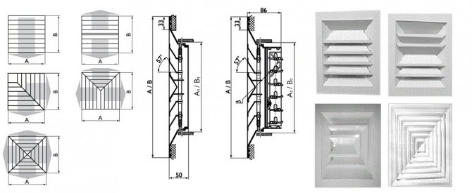 - Contrôle des stores. Les diffuseurs peuvent être réglables ou non. Dans les premiers modèles, les stores étaient installés en position statique. Les produits réglables sont capables de changer la direction et le volume du flux d'air.