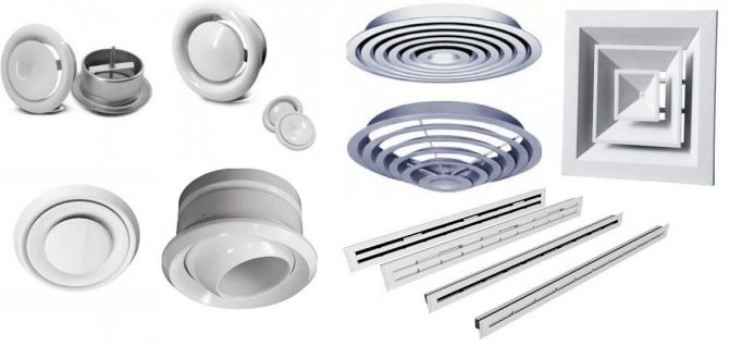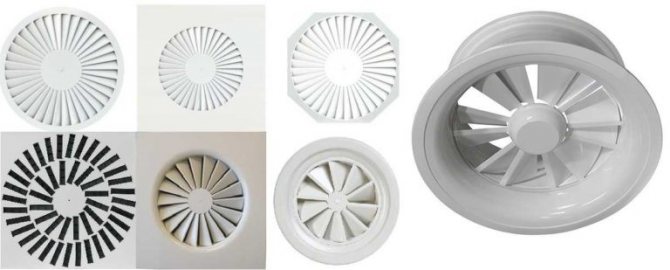 Chaque fabricant produit des dispositifs de différentes formes et conceptions du diffuseur d'air. Il n'y a pas de classification stricte des diffuseurs en fonction des caractéristiques du débit d'air, mais ils peuvent être divisés en types suivants:
