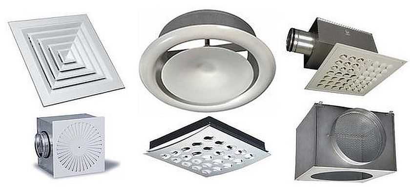 - Lieu d'installation. Les diffuseurs de ventilation peuvent être installés verticalement (mural) et horizontalement (plafonnier).