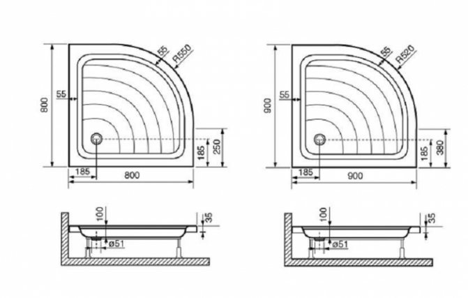 Parmi eux, vous pouvez trouver des modèles de forme ronde, rectangulaire ou libre. Les modèles les plus populaires de l'assortiment sont les modèles ronds et quart de cercle. Cette dernière option est très pratique pour installer une cabine de douche.