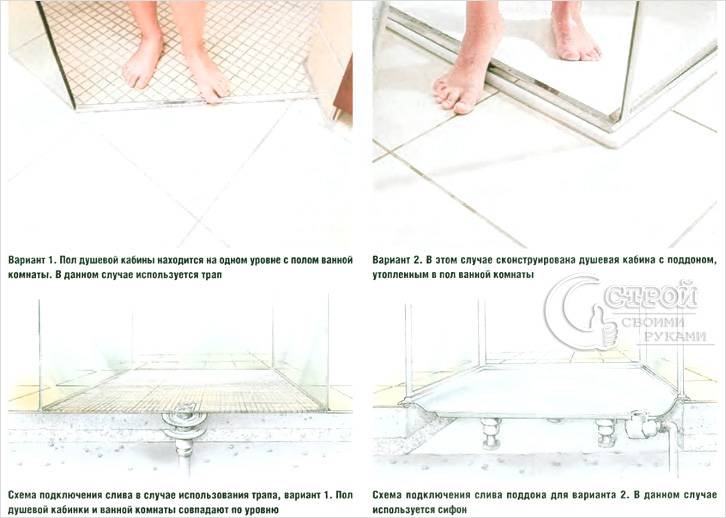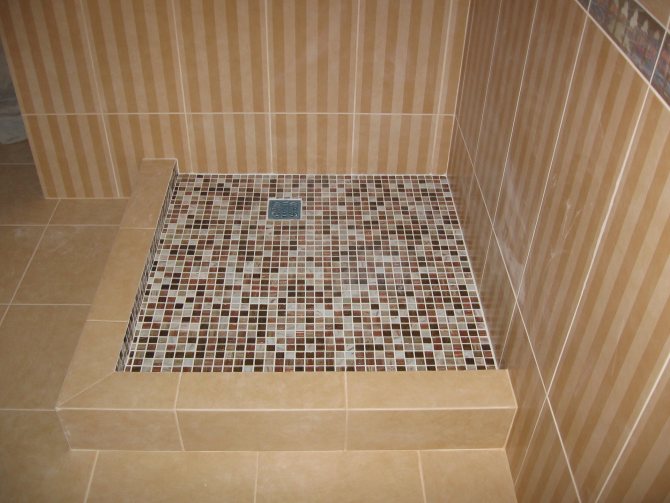 L'angle d'inclinaison recommandé est de 4 à 7%. En règle générale, ce moment détermine une certaine élévation de la palette au-dessus du sol de la salle de bain principale, si la cabine de douche est installée sur un sol déjà fini. Si le sol n'a pas encore été coulé, il est possible de ramener toutes les communications à un seul niveau.