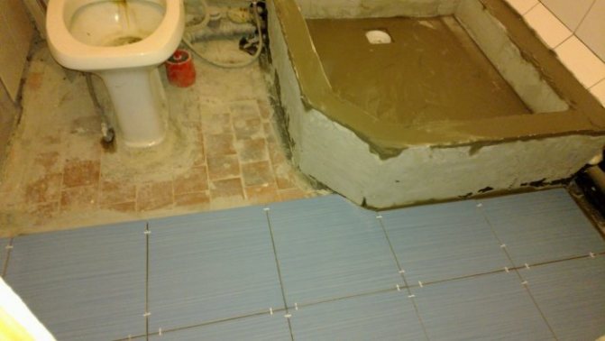 L'imperméabilisation est recommandée que les sols soient posés dans la salle de bain: béton ou bois. La section de plancher choisie pour l'installation de la palette doit être débarrassée de tout balayage inutile. Il vaut mieux que le plateau soit placé à l'emplacement du bain.
