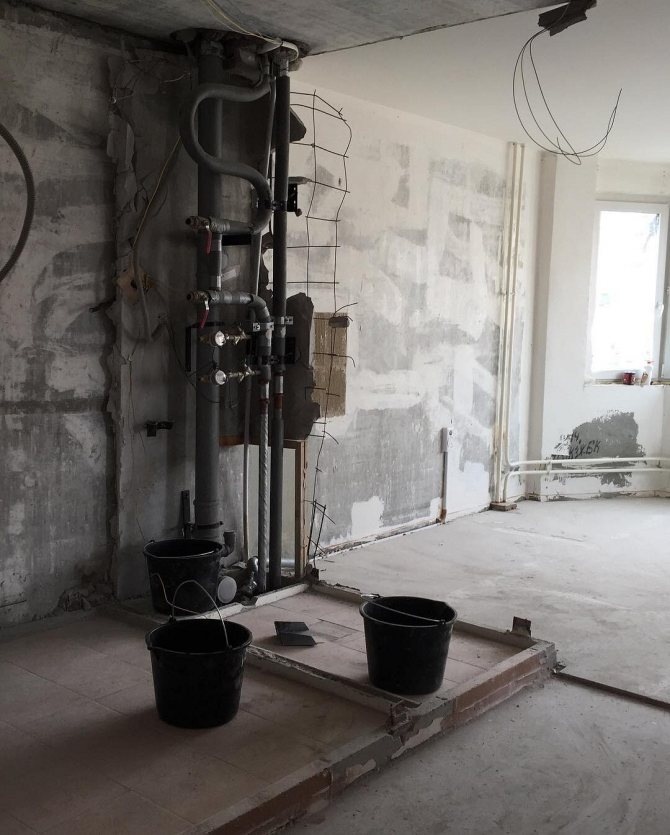 Lors de l'exécution de travaux supplémentaires, le tuyau de dérivation installé doit être enveloppé d'un chiffon afin d'éviter qu'il ne se colmate par des débris de construction.