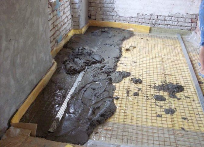 - Par la suite, une chape rugueuse est coulée, qui, à la fin du séchage, est à nouveau recouverte d'une couche d'imperméabilisation.