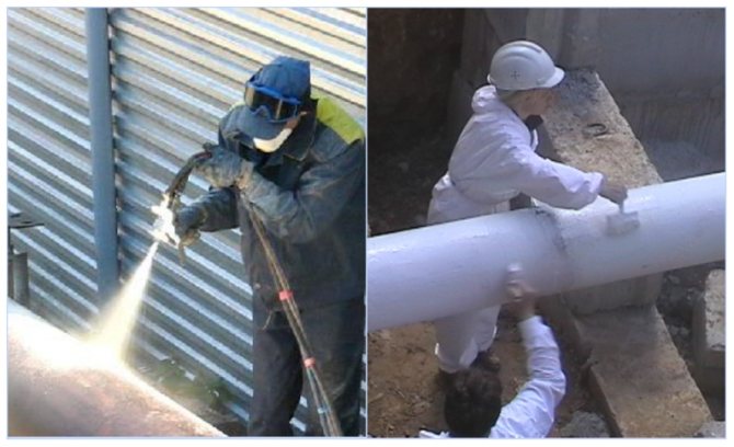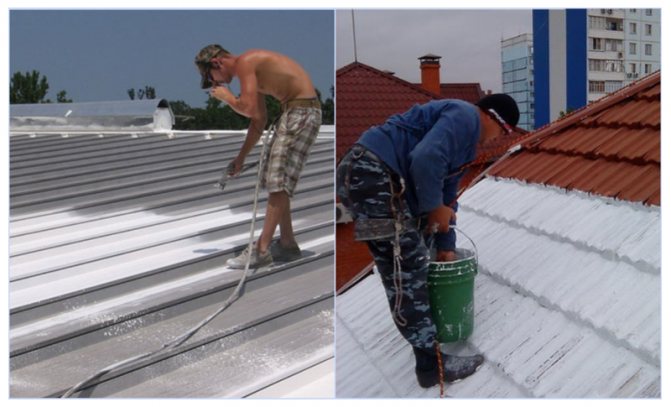 Il est plus pratique de peindre de grandes pièces avec un spray ou un compresseur. Ainsi, il sortira pour répartir uniformément la composition sur la surface. Les petites zones peuvent être peintes avec un pinceau ou un rouleau. Pour assurer une isolation thermique fiable, une application en plusieurs couches est requise, de préférence au moins trois.