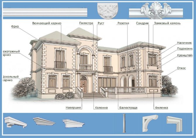 Tout d'abord, la possibilité d'utiliser du matériel de finition pour décorer une maison privée. De nombreux éléments sont représentés sur la façade d'un grand bâtiment de deux étages. Cependant, cela ne signifie pas que le décor de façade en polystyrène ne peut être utilisé que sur les demeures. Dans n'importe quel bâtiment, vous pouvez installer des éléments individuels ou d'autres détails, y compris ceux de nature exclusive.