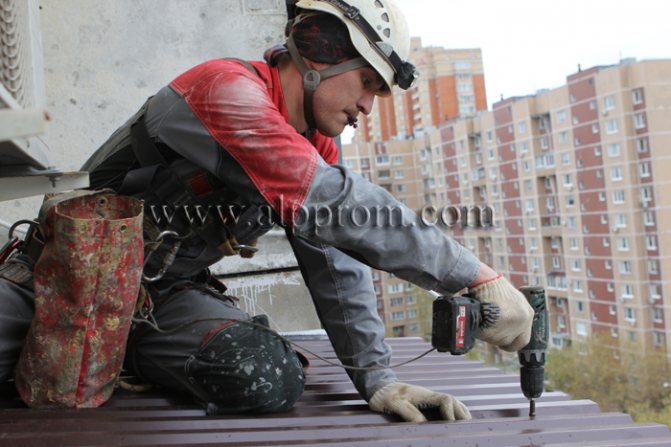 Si vous avez pris la décision d'installer indépendamment le toit au-dessus du balcon, sans l'implication des grimpeurs industriels de notre entreprise, nous vous prévenons: afin de respecter les mesures de sécurité lors de travaux en hauteur, il est préférable d'utiliser du matériel d'escalade et de descendre la corde du toit de la maison. N'oubliez pas que le câble ne peut être attaché qu'aux structures principales du bâtiment, et non aux clôtures et aux tuyaux de ventilation et d'échappement. Pour entrer sur le toit du bâtiment, il vous suffit de rédiger une demande auprès de l'organisme exploitant, de fournir un livre d'escalade ou un certificat valablement délivré au travail, confirmant que vous êtes formé, passé la certification et autorisé à effectuer des travaux d'installation de steeplejack.