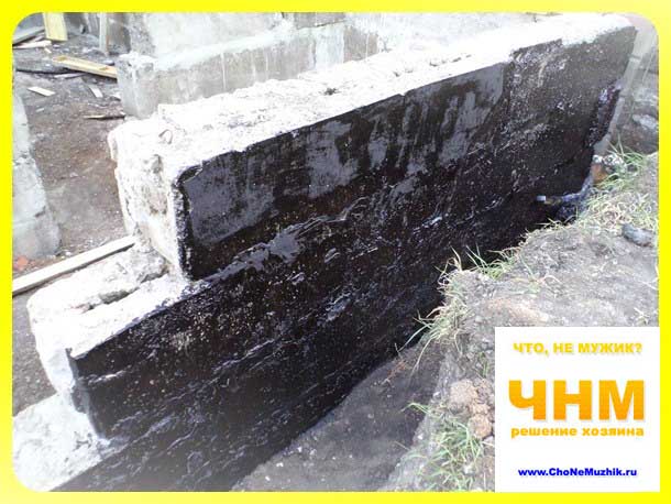 Appliquer le mastic sur les surfaces latérales des fondations, prétraité avec un apprêt, sur toute la surface de la semelle au niveau de la surface de planification de la terre.