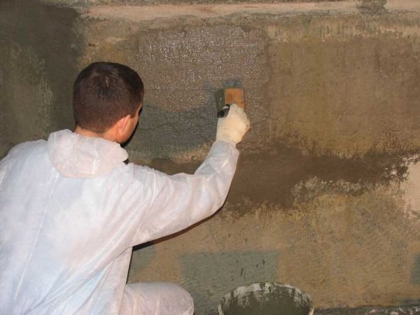 Cette méthode vous permet de niveler la surface de la fondation et en même temps de la protéger de l'action destructrice de l'eau. Pour l'application de l'imperméabilisation, des mélanges spéciaux avec des additifs résistants à l'humidité sont produits. Le mélange est appliqué, comme du plâtre ordinaire.