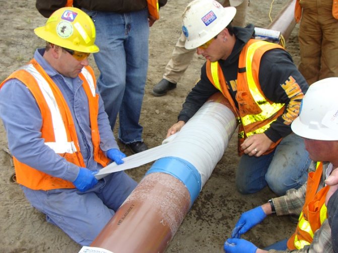 L'imperméabilisation des tuyaux dans le sol protège de l'humidité et des eaux souterraines pour les tuyaux en acier et autres matériaux souterrains. Une telle isolation est généralement réalisée au moyen d'une feuille de caoutchouc spéciale.