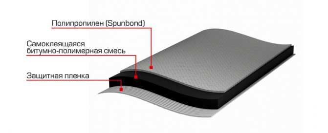 - Couche de protection inférieure: P - film polyéthylène, M - vinaigrette à grains fins, DANS - couverture ventilée, ou conduits de ventilation, E - non-tissé polymère et DE - côté autocollant.