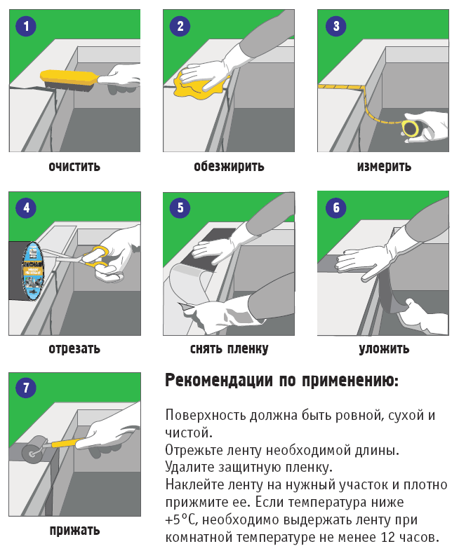 Schéma d'installation du ruban d'étanchéité auto-adhésif